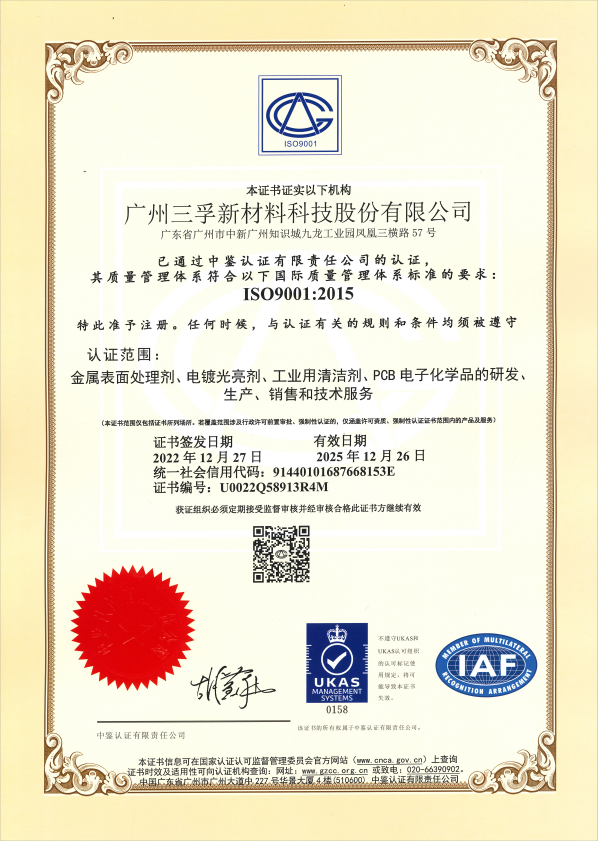 17 | 无氰高密度铜镀液取得2017年广东省高新技术产品认定 | 广东省高新技术企业协会 | 2017年12月 |