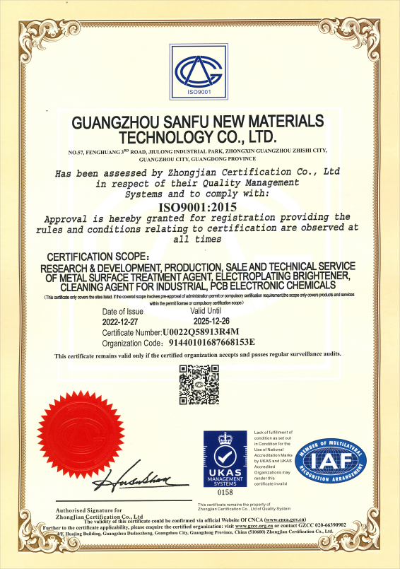 23 | SF-水溶性氯化钾镀锌添加剂取得2020年广东省高新技术产品认定 | 广东省高新技术企业协会 | 2021年4月 |